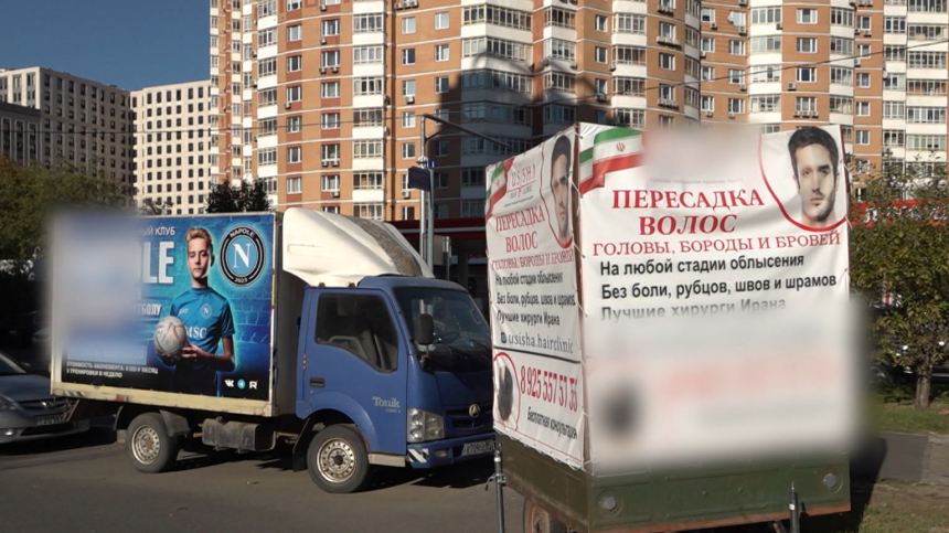 Яркая, громоздкая, с навязчивыми слоганами — автоприцепы с рекламой захламили улицы Москвы и Санкт-Петербурга. Чаще всего их установка ни с кем не согласована и вызывает массу негодования.