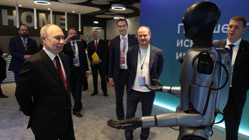 Андроид с ИИ станцевал перед президентом РФ Владимиром Путиным. Робот встретил российского лидера на выставке «Путешествие в мир искусственного интеллекта».