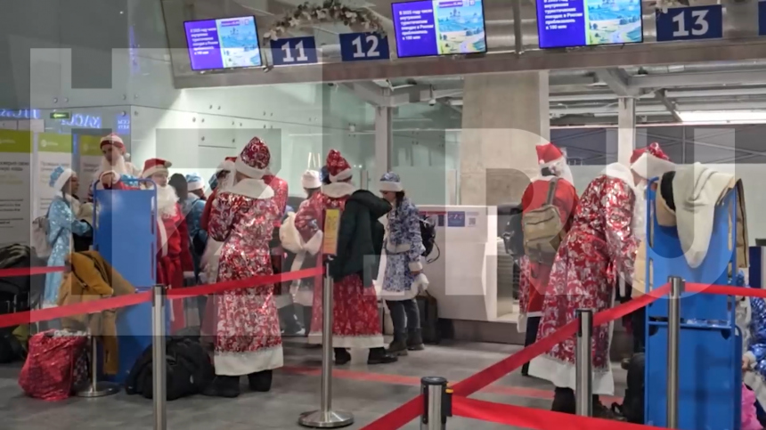 «Мы здесь с самого утра, здесь живая очередь. Деды Морозы сегодня летят бесплатно, только если влезут в самолет», — поведал очевидец.