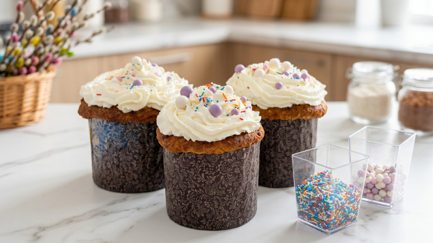 - Украсить остывшие куличи кремом.