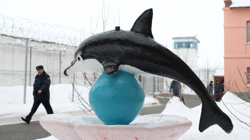 «В конце 1990-х годов администрация решила украсить фасад. Предлагали медведей, но дельфины — вода — подходят для фонтана. Сделали из арматуры, цемента и песка двух дельфинов. Потом в 2000 году перед приездом корреспондентов их покрасили в черный цвет, потому что денег на хорошую краску не было. Журналист сфотографировал на фоне этих дельфинов этап и подписал: „ИК-6 (Черный дельфин)“. Так и пошло. Но этих дельфинов делали не пожизненно осужденные. Тогда их вообще не было. Это был особый режим, обычные осужденные. Их даже никто не помнит», — раскрывает тайну Коробов.
