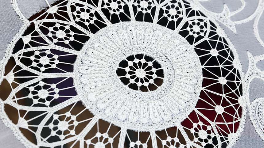 «Мы вышиваем шелком, белыми нитками, самой тонкой иголкой. <…> Допустим, автомат не сошьет так. Наше кружево все равно более изящное, оно тоньше и красивее по сравнению с машинной вышивкой», — рассказала швея Наталья Беглова.