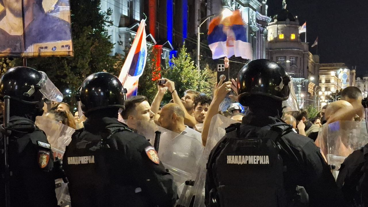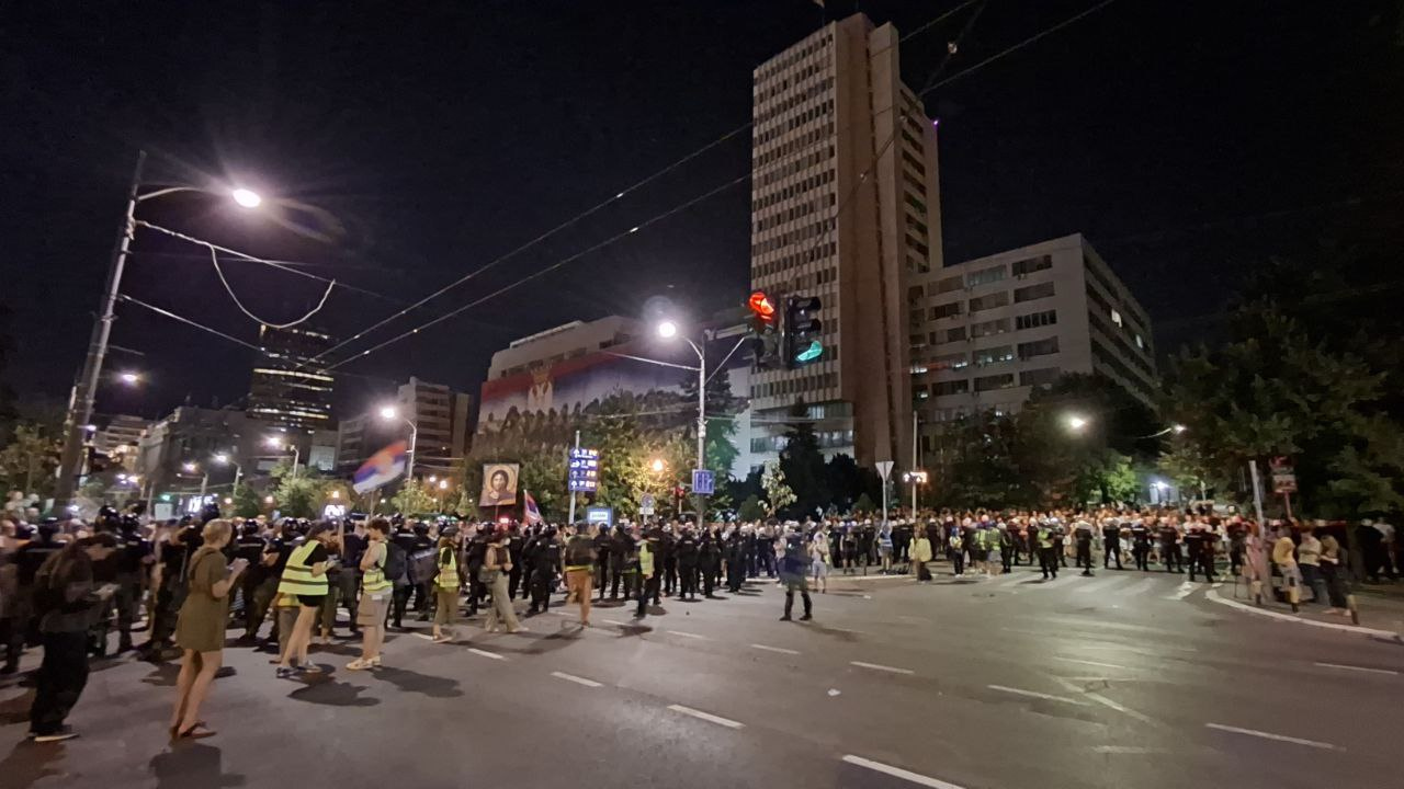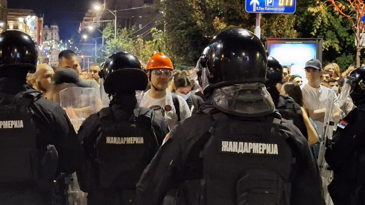 Полиция в Белграде продолжает подавлять акции протеста на улицах сербской столицы. Правоохранители применяют слезоточивый газ, пытаясь разогнать демонстрантов, выкрикивающих лозунги. Общественный транспорт временно не работает, дороги заполнили участники протестов в масках и банданах, а также усиленные наряды полиции.