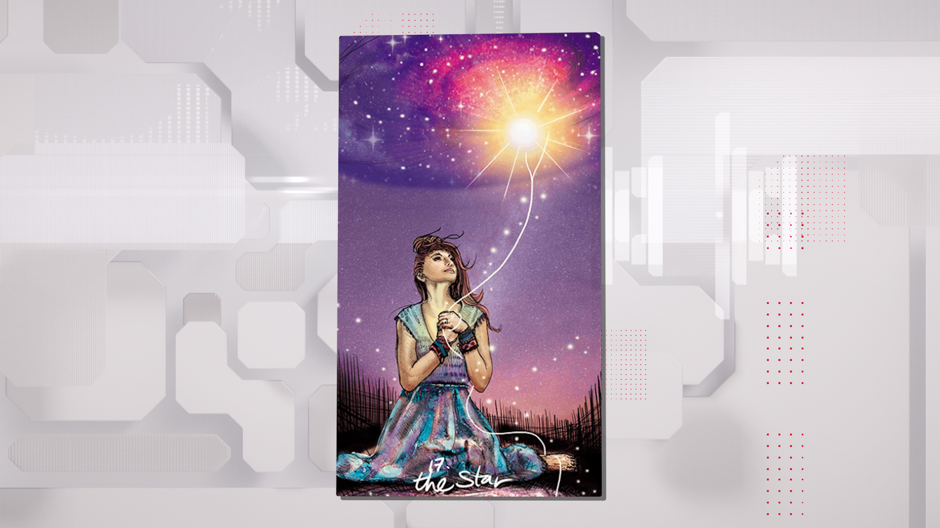 Звезда — карта надежды, внутреннего света, исцеления. Она говорит: Вы не одни, вы на своем пути и вы не потеряли себя. Даже если были потери, сомнения, боль — внутри вас горит звезда. Она не требует, чтобы вы были сильными. Она просто напоминает: Вы живы. Вы верите. Вы идете дальше.