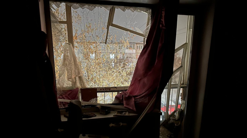 В квартире выбило окна и обрушилась стена.