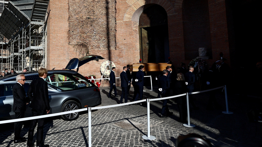 «Здесь, в базилике Санта-Мария-дельи-Анджели-э-дей-Мартири, прощаются не только с гением, но и отпускают в прошлое эпоху. Кутюрье старой школы, и это точно не глянцевый штамп», — отметила корреспондент.