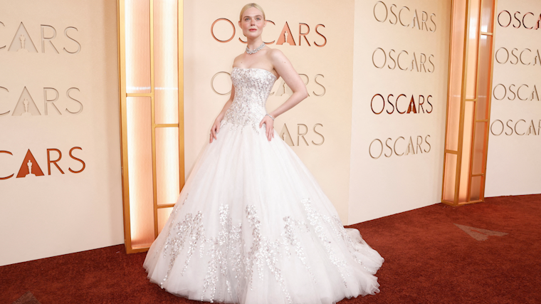 На красной дорожке Фаннинг выглядела в стилистике сказочной принцессы — легкая ткань, мягкие линии и аккуратная декоративная отделка усиливали впечатление.