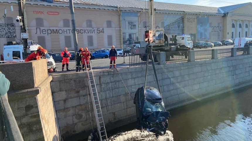 Дорожный инцидент с серьезными последствиями был зафиксирован у дома номер 54 по Лермонтовскому проспекту. По неустановленным пока причинам транспортное средство потеряло управление, снесло металлическое ограждение набережной и сорвалось вниз, оказавшись в холодной воде канала.