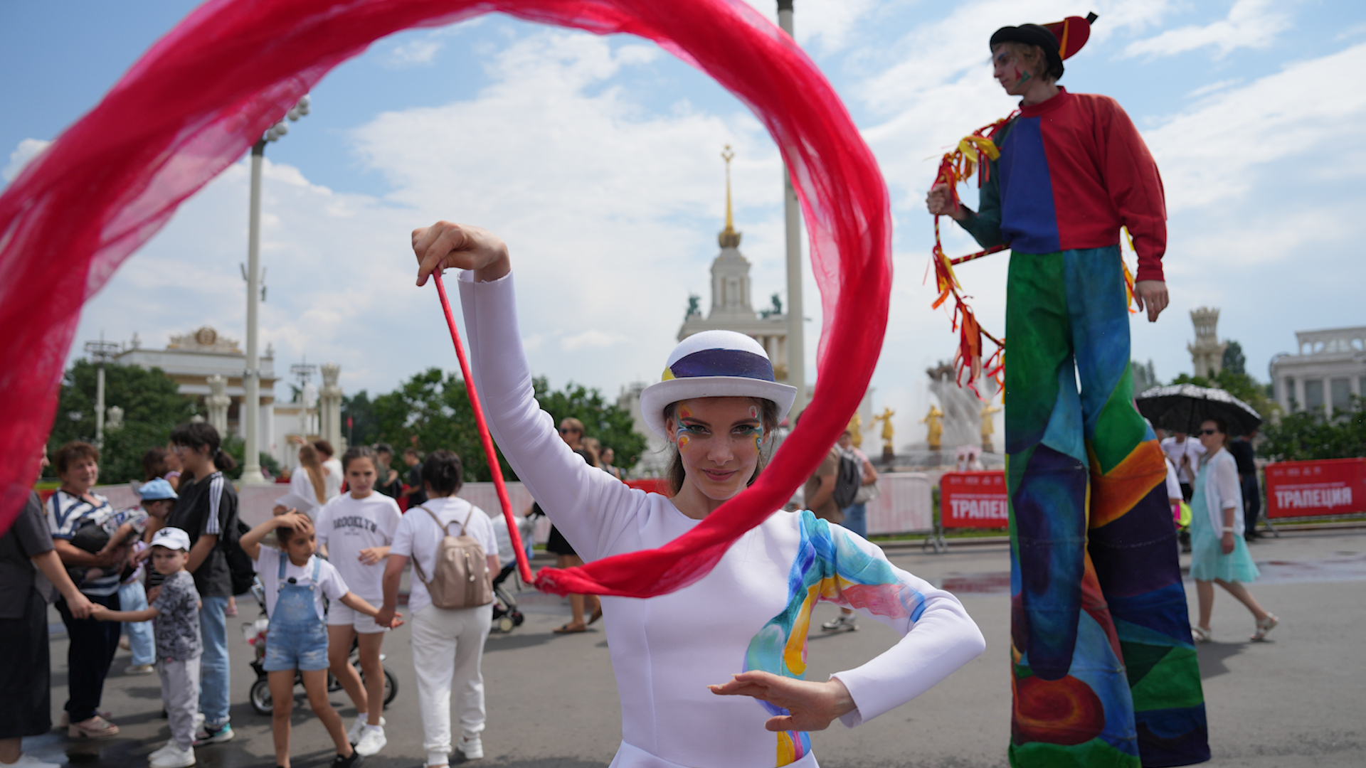 Зрелищные шоу, захватывающие трюки, выступление известных певцов — все это вместе с яркими эмоциями гости ВДНХ получили бесплатно на Центральной аллее. Публику развлекали жонглеры, акробаты и музыканты — группа «Пицца», Ваня Дмитриенко, Мари Краймбрери и Niletto.
