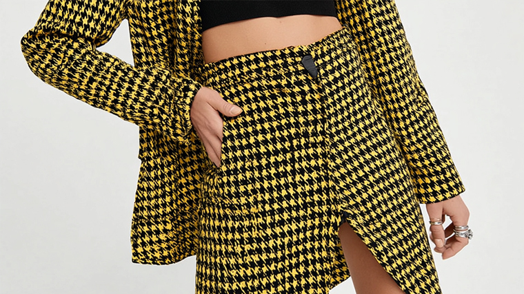 - «Гусиная лапка». Классический принт, который раньше считался слишком строгим, теперь появляется в ярких цветах и на разных типах одежды.